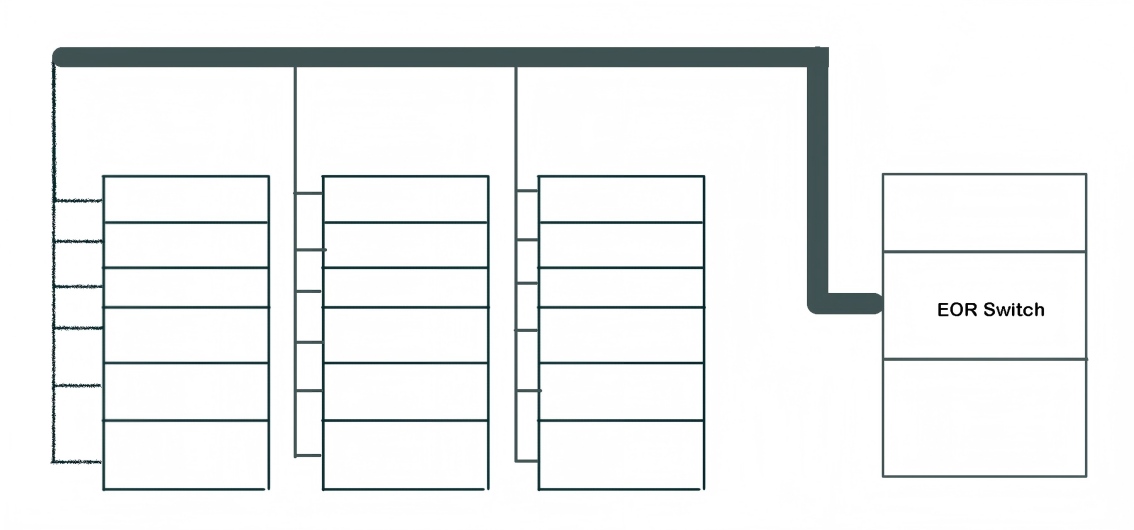End-of-Row (EoR) architecture places the access switches physically at the end of each row of server racks. All servers in that row have cables running to the row-end switch, which subsequently links to the core switch or router to enable broader network access.