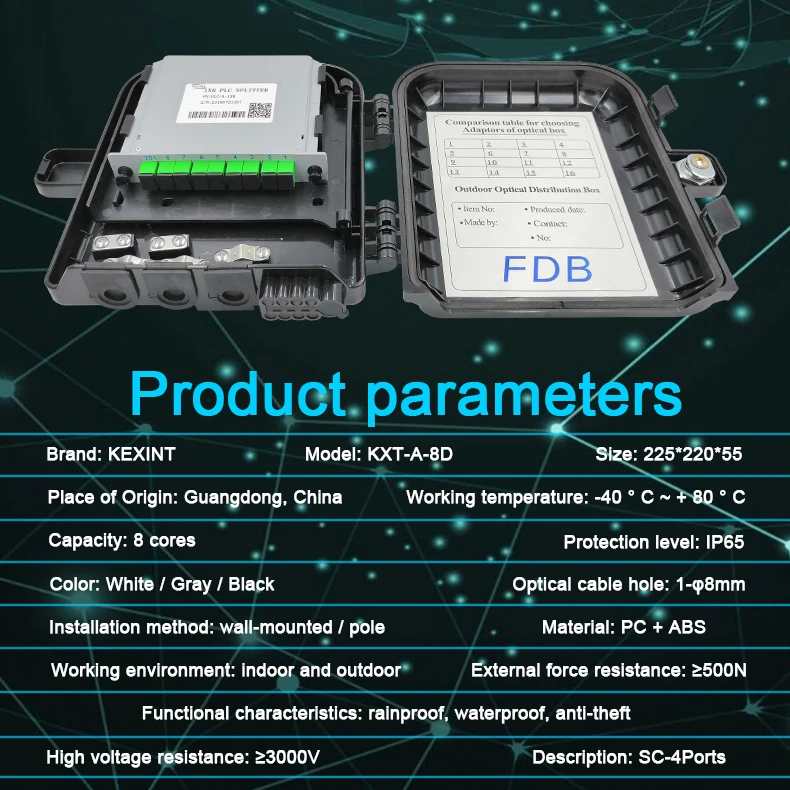 شنتشن Kexint التكنولوجيا المحدودة. تم تصنيع وتصدير وتوريد KEXINT Wall Mount Pole Mount بجودة ممتازة بدون قطع كابل من نوع Ftb 16 Core FTTH Fiber Optic Distribution Box. KEXINT Wall Mount Pole Mount No Cutting Cable Type Ftb 16 Core FTTH Fiber Optic Distribution Box يمكن أن يساعد الشركات على التميز في بيئة شديدة التنافسية وأن تصبح رائدة الصناعة في ضربة واحدة. شنتشن Kexint التكنولوجيا المحدودة. سيعمل بشكل كامل على الفكرة المهمة المتمثلة في "الجودة أولاً والعميل قبل كل شيء" ومواكبة العصر لتعزيز قدرات الابتكار لشركتنا. سوف نتقدم ببسالة ونحقق هدفنا في أن نكون المؤسسة الرائدة في السوق العالمية.