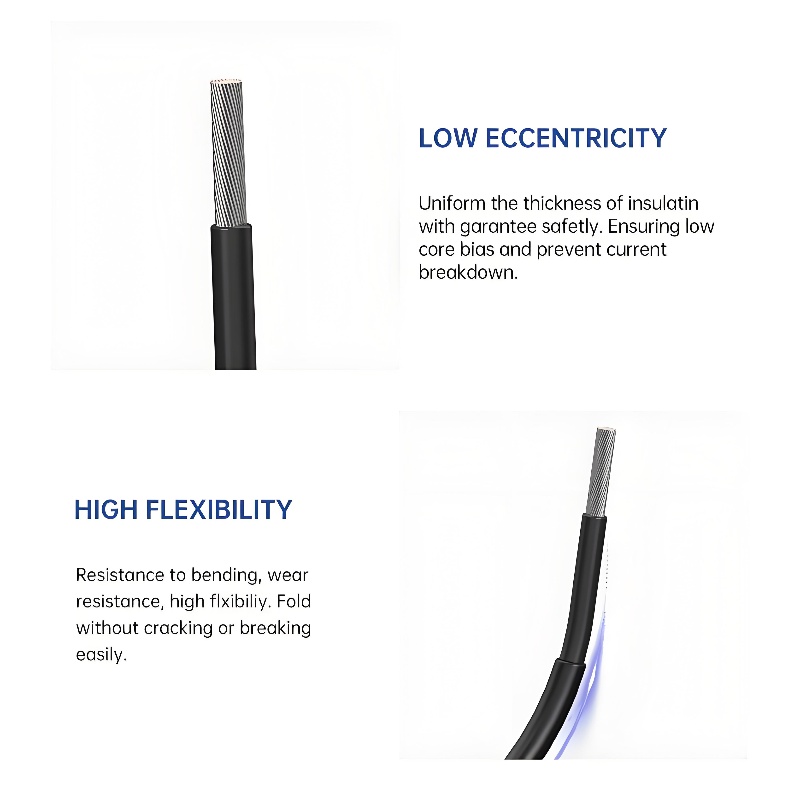 Solar cable is a special cable used in solar power generation systems, mainly for DC voltage terminals, lead-in connections of power generation equipment and inter-component convergence connections, up to DC 1.8kv for photovoltaic power generation equipment systems. It is weather-resistant, cold-resistant, high-temperature-resistant, friction-resistant, UV-resistant and ozone-resistant, with working life of at least 25 years.