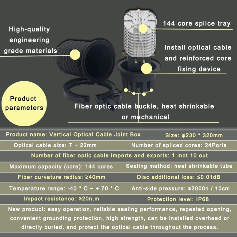 Takket være indsatsen fra vores medarbejdere, herunder teknikere og designere, Shenzhen Kexint Technology Co., ltd. er i stand til at introducere vores .KEXINT Outdoor Dome IP68 vandtæt 144 kerne vandret krympbar tætning Fiberoptisk fugelukning til offentligheden. Efter at KEXINT Outdoor Dome IP68 Vandtæt 144 Core Horizontal Shrinkable Seal Fiber Optic Joint Closure blev lanceret, fik vi god feedback, og vores kunder troede på, at denne type produkt kunne opfylde deres egne behov. Siden vores start har Shenzhen Kexint Technology Co., ltd. har stræbt fremad med det formål at være en førende virksomhed i verden. Vi vil fokusere mere på at forbedre vores R&D-kapaciteter og opgradere teknologier for at udvikle mere kreative produkter, og derfor føre branchens tendenser og holde os konkurrencedygtige på markedet.