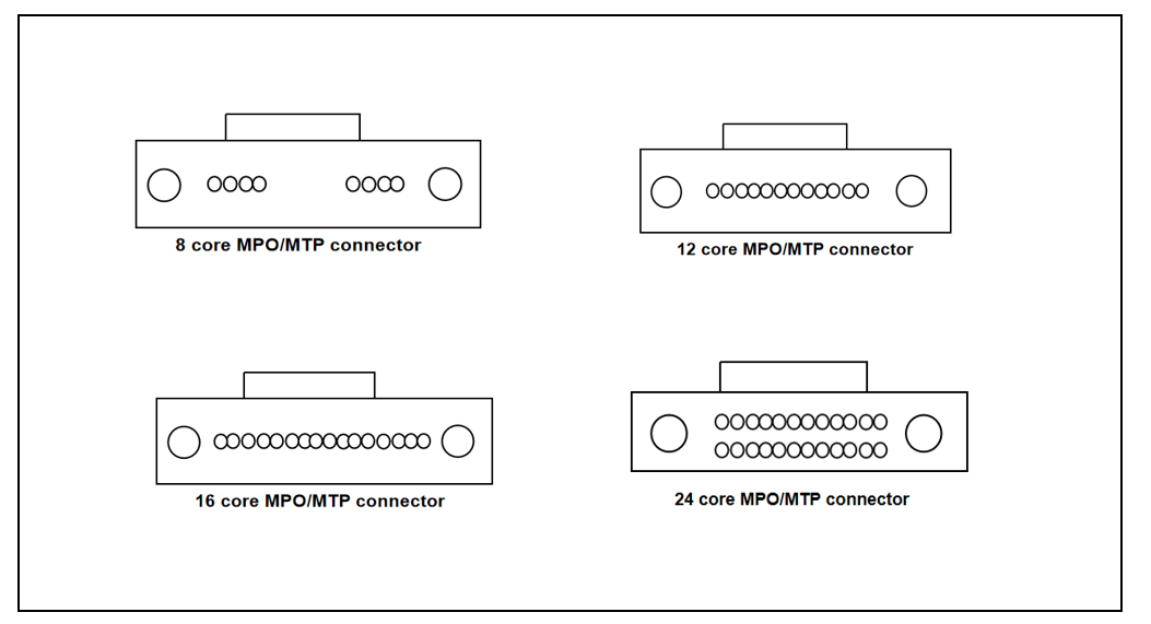 Conectores MPO/MTP macho y hembra. El conector de fibra óptica MPO/MTP consta de fibras ópticas, revestimientos, componentes de acoplamiento, anillos metálicos, pines (pins), tapas antipolvo, etc. Los pines se dividen en dos tipos: macho y hembra. El conector macho tiene dos pines, mientras que el conector hembra no tiene ninguno. La conexión entre los conectores MPO/MTP se realiza mediante una alineación precisa de los pines. Los dos conectores MPO/MTP que se conectan entre sí deben ser uno macho y uno hembra.