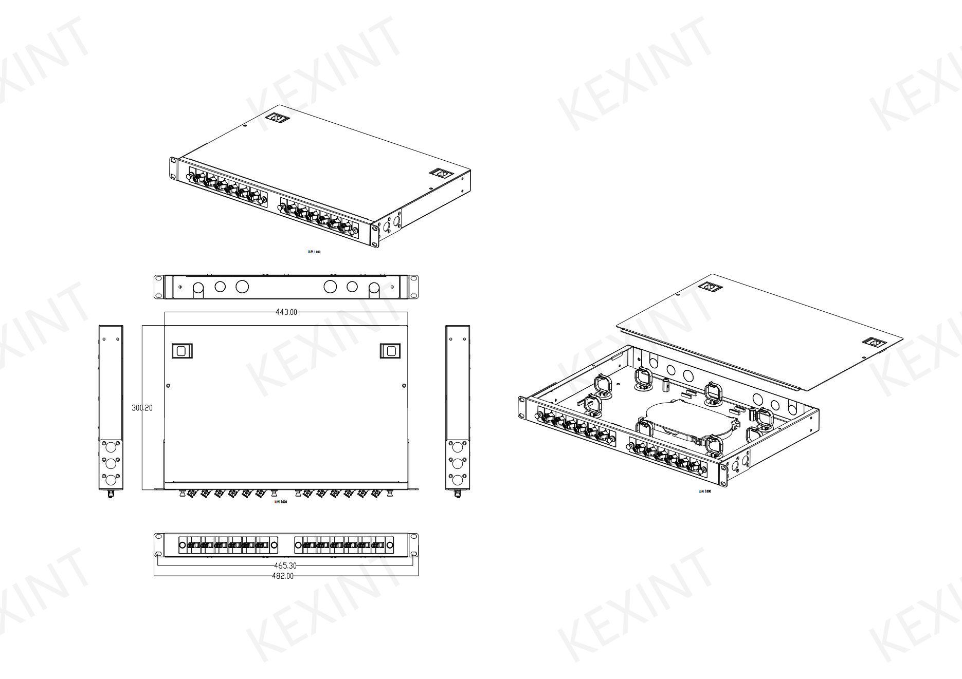 3. Estructura estándar de 19 ", instalación tipo rack, adecuada para adaptadores FC, SC, ST, LC, estructura de tracción y fácil de operar.
