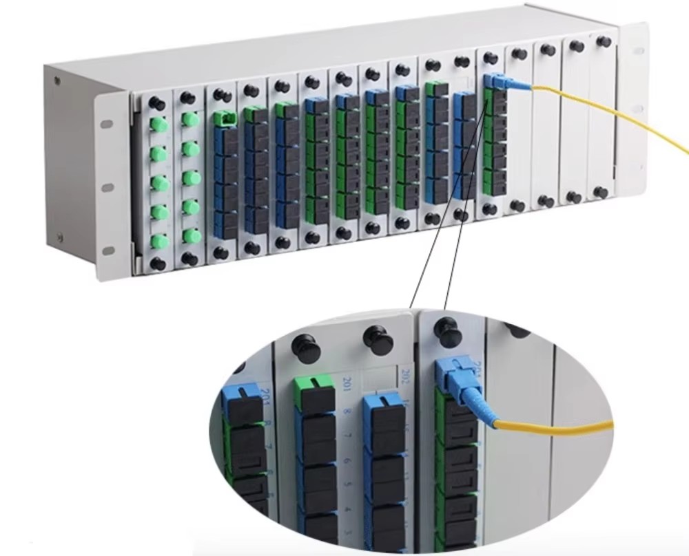 La caja de terminales de fibra óptica de la serie KXT-3U-16PLC se puede aplicar en la conexión de rama de terminación de fibra, funcionando como caja de distribución, estructura estándar de 3U*19'', montaje en bastidor, disponible para la instalación de adaptadores FC,SC,ST,LC .