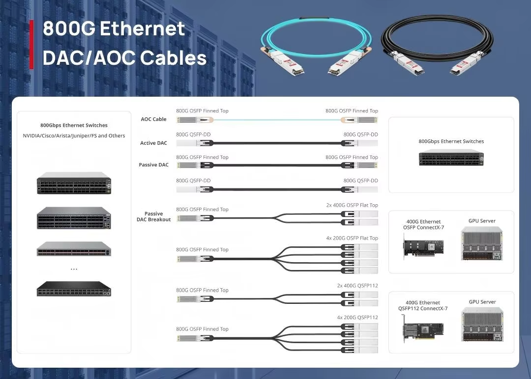 Este cable cumple con los estándares OSFP MSA (Acuerdo Multifuente) e IEEE 802.3ck. Los cables ACC integran un chip Redriver que extiende el alcance hasta 5 metros, garantizando la latencia (<1,3 W de potencia), mejorando el ancho de banda, la densidad y la configurabilidad del puerto. Estos enlaces de bajo consumo son ideales para la conectividad de media distancia en centros de datos, clústeres de IA/HPC e implementaciones entre racks.