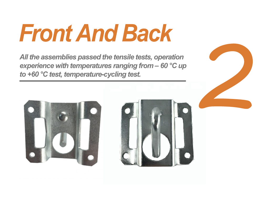 Diseñadas para soportar ambos extremos de caídas de servicio reforzadas de 1 y 2 pares, las abrazaderas de cable de caída pueden soportar el soporte de montaje en poste hecho de acero galvanizado, lo que garantiza un largo tiempo de uso.