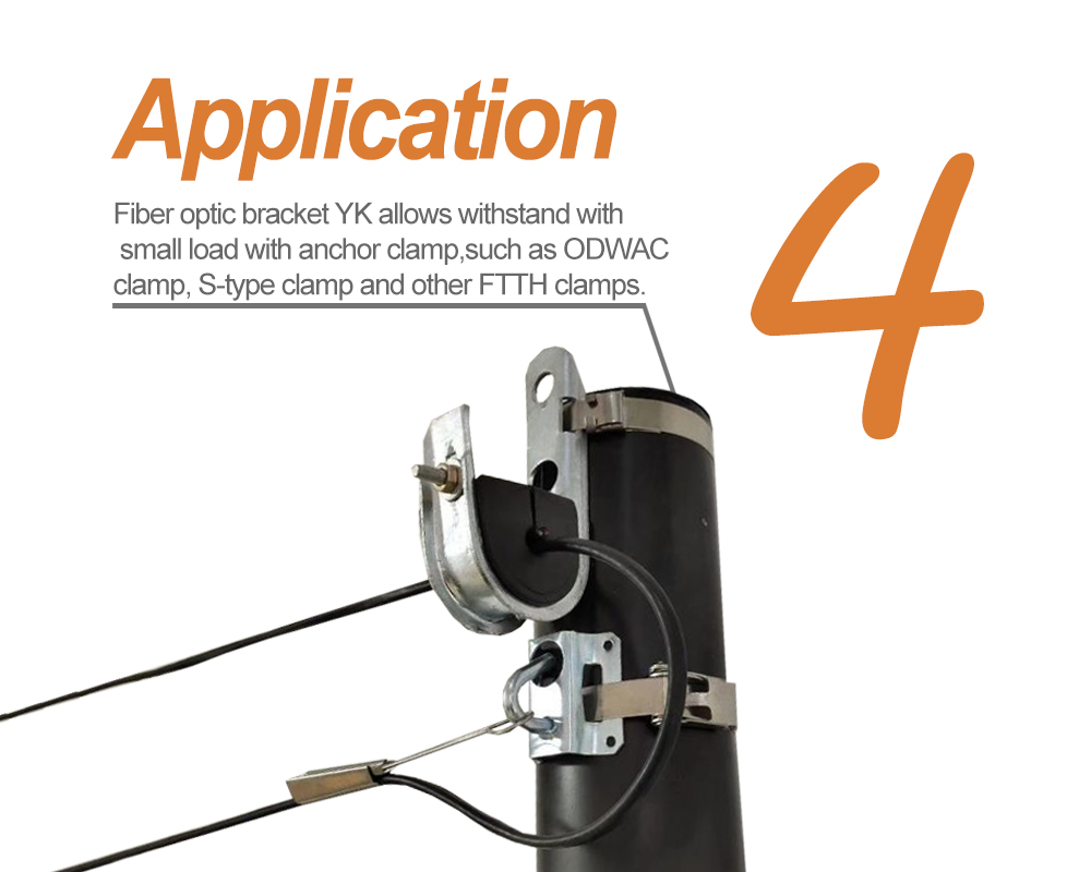 El soporte de montaje en poste es más adecuado para montar en postes con correas de acero inoxidable, se usa ampliamente en proyectos FTTx, para fijar la abrazadera de anclaje del cable de caída, abrazadera de suspensión.