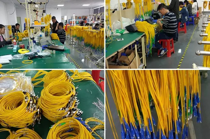 Latiguillo de fibra óptica significa que ambos extremos del cable óptico están equipados con conectores para realizar la conexión activa de la ruta óptica; un extremo con un enchufe se llama coleta. Los latiguillos de fibra óptica son similares a los cables coaxiales, pero sin el blindaje de malla. En el centro está el núcleo de vidrio para la propagación de la luz. En una fibra multimodo, el diámetro del núcleo es de 50 μm a 65 μm, aproximadamente equivalente al grosor de un cabello humano. El núcleo de fibra monomodo tiene un diámetro de 9 μm. El núcleo está rodeado por una cubierta de vidrio con un índice de refracción más bajo que el del núcleo para mantener la fibra dentro del núcleo. En el exterior hay una delgada cubierta de plástico para proteger el sobre.