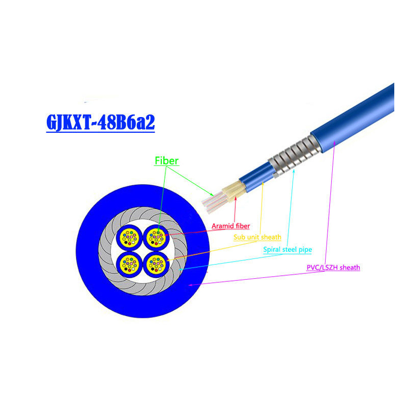mi. Fibras trenzadas helicoidales trenzadas SZ de paso pequeño y fibras de aramida combinadas para garantizar que el cable de fibra óptica de campo tenga una mayor capacidad de tensión de tracción;