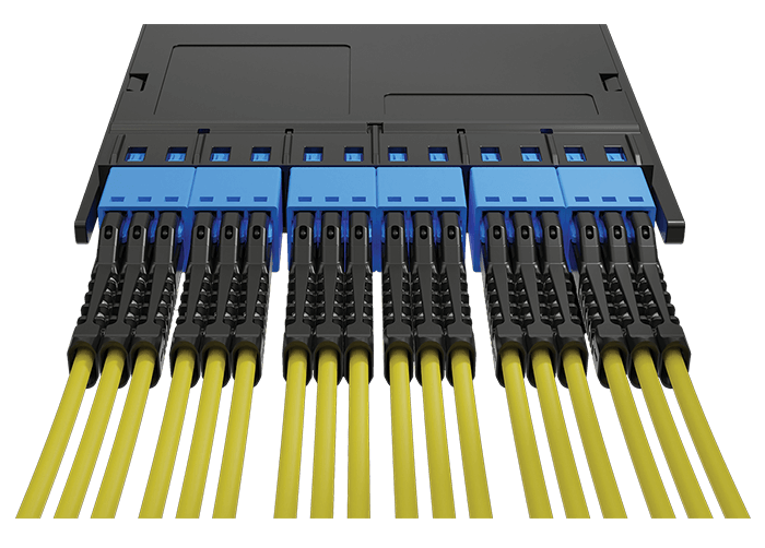 El aumento de la densidad de conectores en el módulo/panel minimiza el hardware requerido, lo que lleva a una reducción de capital y gastos operativos. Actualmente, una carcasa de una unidad de rack (RU) está limitada a 144 fibras mediante conectores y adaptadores LC dúplex. El conector MDC más pequeño aumenta la densidad del conector 3 veces, proporcionando hasta 432 fibras en el mismo espacio de 1 RU.