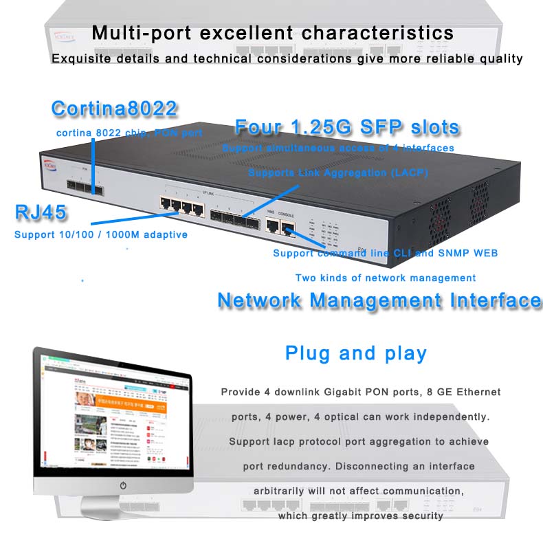 Las tecnologías aplicadas se utilizan para garantizar que el rendimiento de Factory Direct EPON OLT con módulos y administración de 4 puertos sea estable. Sus ámbitos de aplicación son lo suficientemente amplios como para cubrir los campos de los equipos de fibra óptica.