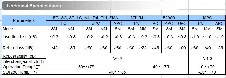 | Usar: | FTTH | Tiempo de garantía: | 3 años |