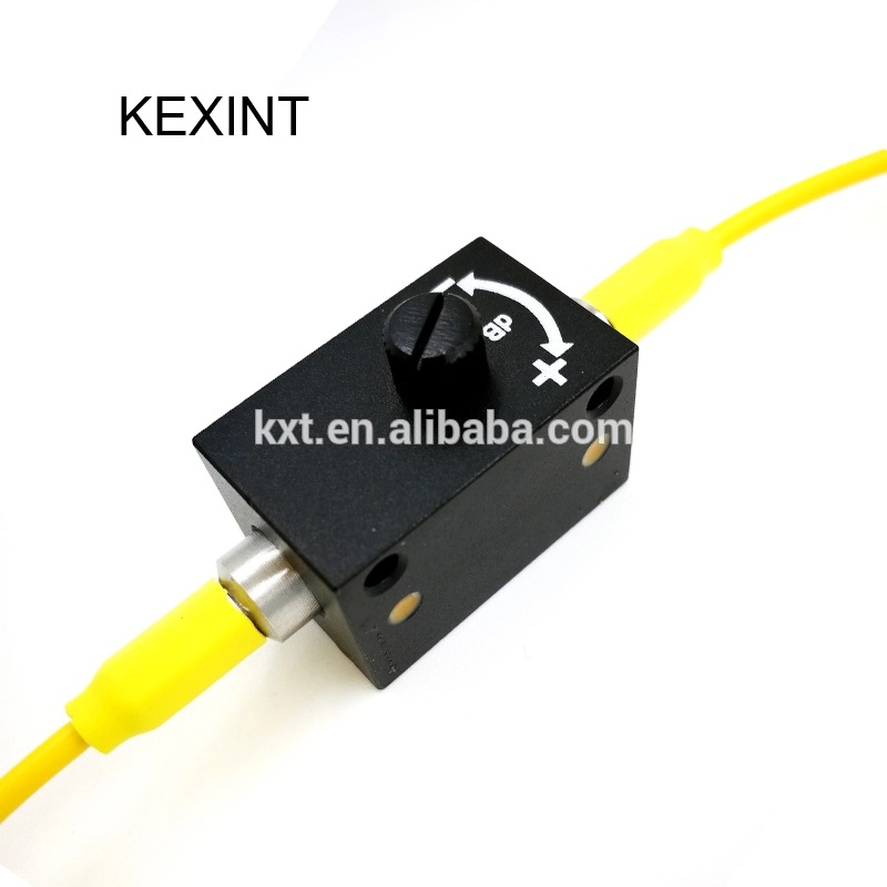 Cada atenuador tiene una lente para colimar la luz de la fibra de entrada. Un dispositivo de bloqueo o ventana se puede ajustar manualmente mediante un tornillo