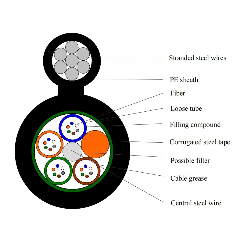 | Material de la chaqueta: | PE PVC LSZH HDPE | Cable mensajero: | Alambre de acero |