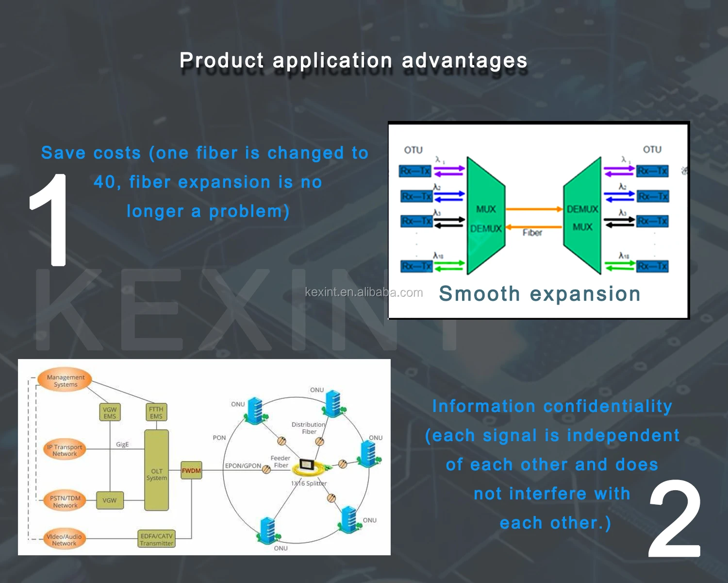 Como Shenzhen Kexint Technology Co., ltd. pasos hacia un mercado más competitivo, sabemos que la única manera de mantenernos por delante de otros competidores es aumentar nuestra fuerza de I+D, mejorar las tecnologías y desarrollar nuevos productos. La caja de distribución de fibra óptica FTTH con PLC Splitter WDM realiza una función poderosa y tiene grandes ventajas. Comparado con los tradicionales, responde mejor a las demandas del mercado.
