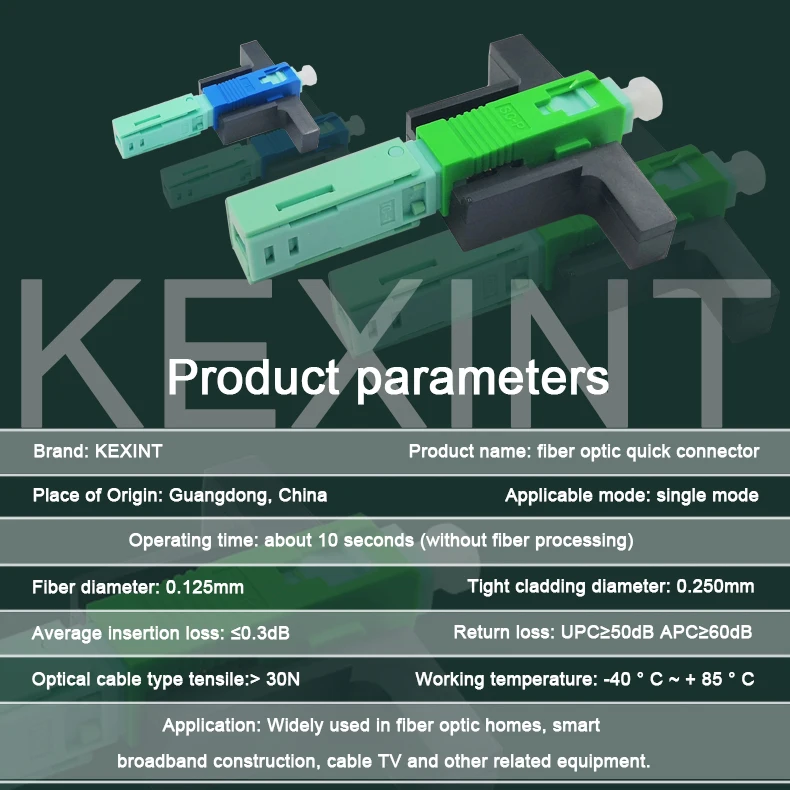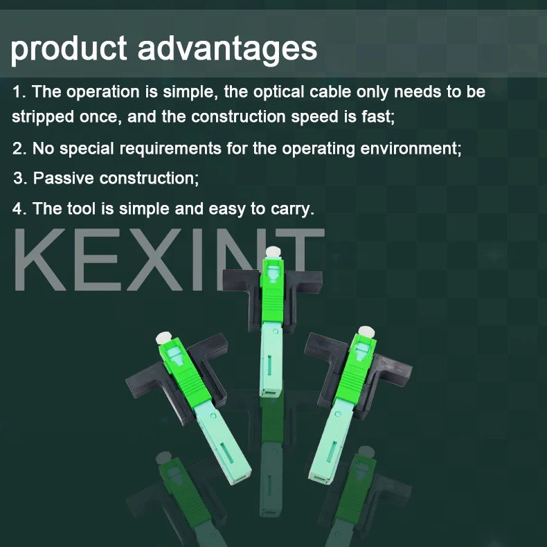 Shenzhen Kexint Technology Co., Ltd. está entusiasmado de que haremos que nuestro conector rápido de fibra óptica KEXINT FTTH Conector rápido de fibra óptica SC UPC sea ampliamente conocido en el mercado. El producto es el resultado de nuestro personal trabajador y nuestras sólidas capacidades técnicas. El uso bien integrado de las tecnologías contribuye al proceso de fabricación de alta eficiencia. Se ha demostrado que el producto es indispensable en el(los) campo(s) de Telecom Parts. En el futuro, la compañía expandirá aún más su negocio.
