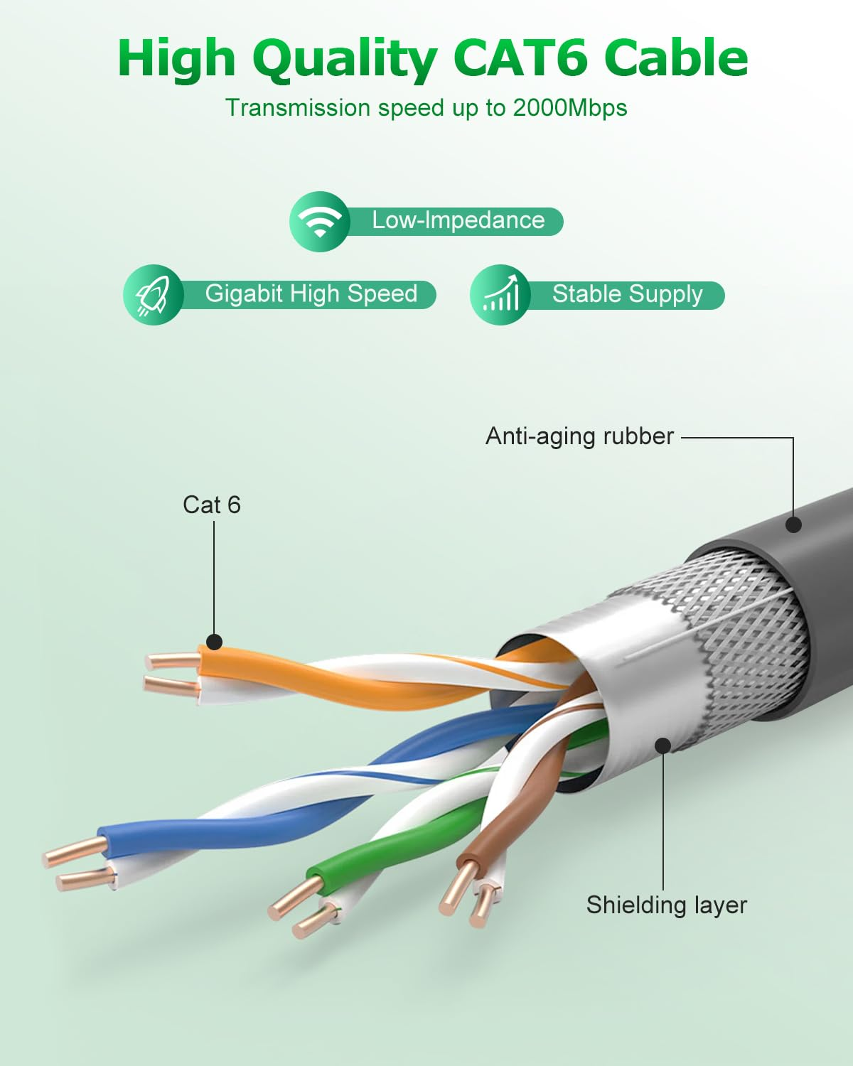 * El cable de reemplazo Starlink Gen 3 utiliza los últimos conectores RJ45, hechos de cobre de un solo núcleo 26AWG de alta calidad con un blindaje de metal y una cubierta de PVC resistente, y velocidades de transferencia de datos de hasta 2000 Mbps para brindarle velocidades de transmisión fluidas y confiables sin pérdida de calidad de señal.