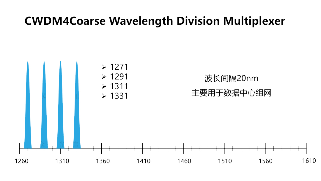 Las aplicaciones 5G utilizan longitudes de onda CWDM6. Además de reutilizar las cuatro longitudes de onda de CWDM4, también añade 1351 nm y 1371 nm.