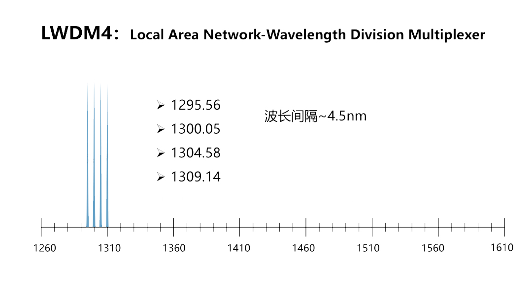 Además de las longitudes de onda cortas, las redes de centros de datos e IA también incluyen transmisión monomodo paralela de luz gris de 1310 nm y multiplexación de cuatro longitudes de onda CWDM4 (o FR4).