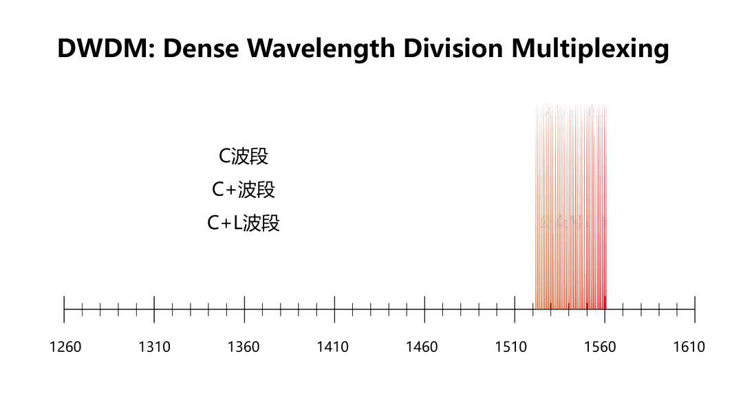 La transmisión troncal y de larga distancia DCI generalmente selecciona las bandas C, C+ y C+L para la multiplexación por división de longitud de onda densa para aumentar la capacidad de transmisión.