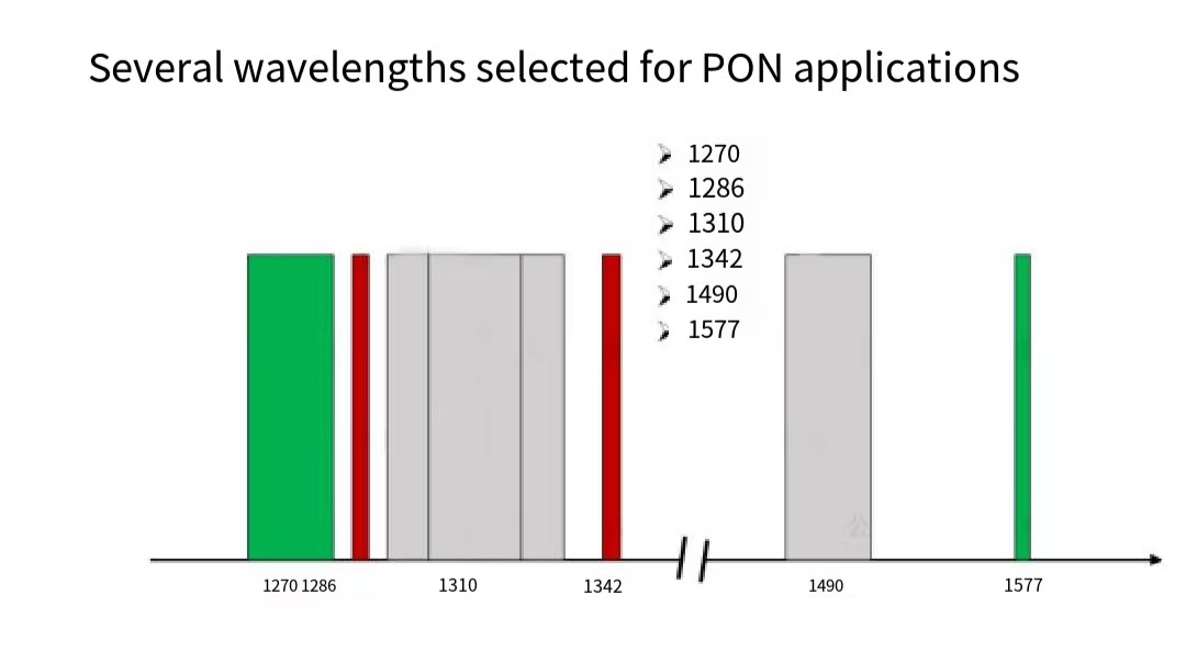 Las redes de acceso PON suelen utilizar dos, cuatro o seis longitudes de onda para la compatibilidad intergeneracional y una configuración de longitud de onda BiDi de una sola fibra. En resumen, lo ideal es que la fibra óptica PON hasta el hogar utilice solo una fibra por hogar para facilitar su operación y reducir costos.