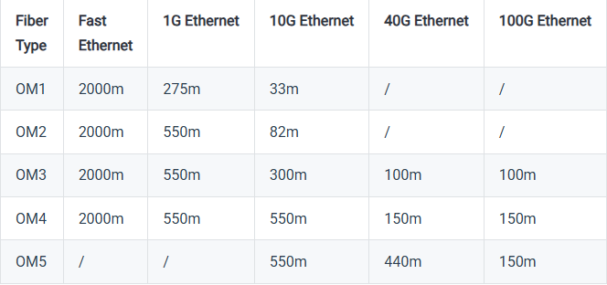 OM1, OM2, OM3, OM4, and OM5 are iterative names of multimode fiber types. "OM" is the abbreviation of "Optical Multimode". The Arabic numerals can be understood as the release order of different generations of multimode fiber standards. Arranged in chronological order, the larger the number, the later the release time. OM1 fiber is the earliest, and OM5 fiber is the latest version. Different types of OM have different core diameters and meet different transmission rates. For example, if you want to meet the parameter rate of 100G rate, you need to choose at least OM4 MPO fiber jumper.