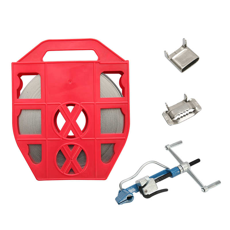 The stainless steel banding tool is a way of binding stainless steel banding around different elements securely. Will tension, cut and crimp stainless steel banding.