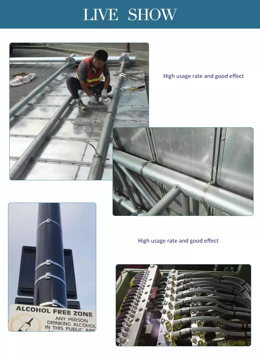 | Application | Fixing pipes,tubes,cables and other related industries,especially in the environments where high resistance of oxidation is required. |