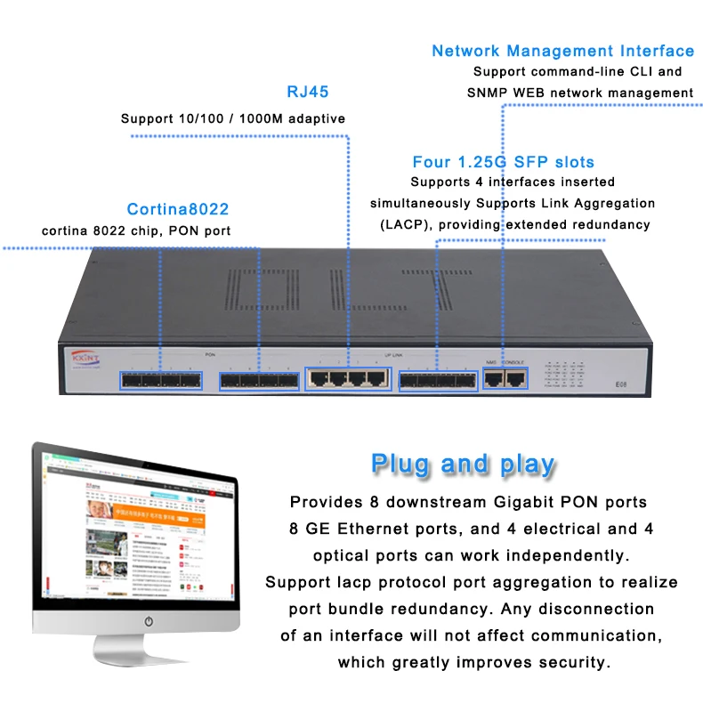 High-end technologies are utilized to manufacture the product, making sure that the fiber optic equipment OLT FTTH Telecom EPON OLT 1U 8 Port EPON OLT with P20+++ Modules and Management 8 port Work is made to be of stable performance and high quality. It has great uses in a wide range of Fiber Optic Equipment.