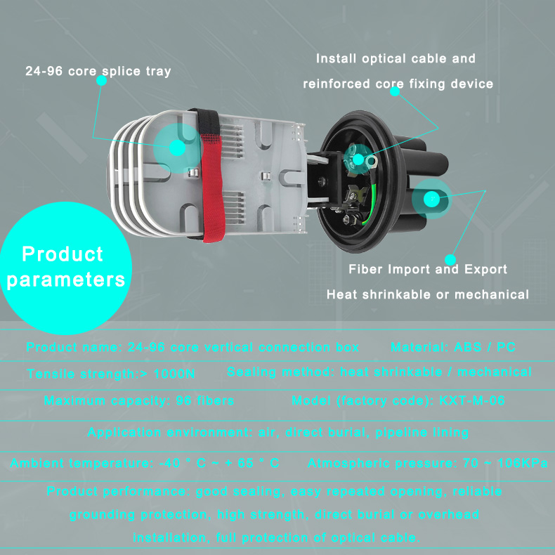 Замыкание оптоволоконного волокна соединяет два или более оптических кабеля вместе и имеет соединительную часть защитного компонента. Это необходимо использовать в построении оптической кабельной линии, и это одно из самых важных оборудований. Качество замыкания оптоволоконного соединения напрямую влияет на оптичельный кабель качество линии и срок службы оптической кабельной линии.