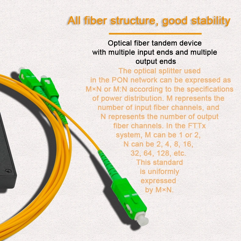 Paglalarawan: Fiber Optical PLC Splitter ay batay sa isang kuwarts substrate integrated weyb gayd optical power distribution aparato, ay ang mga pakinabang ng maliit na lakas ng tunog, ang nagtatrabaho haba ng daluyong saklaw, mataas na kahusayan, magandang liwanag uniformity atbp katangian, ay lalo na angkop para sa passive optical network (Epon, Bpon, Gpon atbp) konektado lokal at terminal kagamitan at mapagtanto ang optical signal devide.