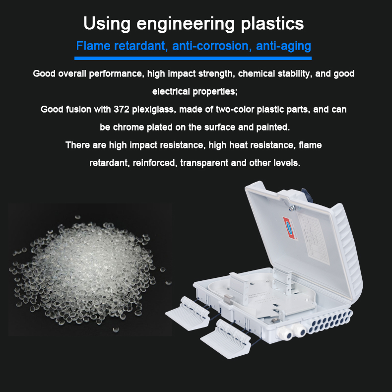 Ang hibla splicing, paghahati, pamamahagi ay maaaring gawin sa kahon na ito, at samantala nagbibigay ito ng solid na proteksyon at pamamahala para sa FTTX network building.