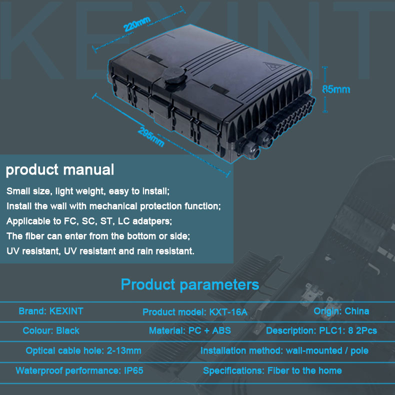 Ang kagamitan ay ginagamit bilang isang punto ng pagwawakas para sa feeder cable upang kumonekta sa drop cable sa FTTX Communication Network System. Ang hibla splicing, paghahati, pamamahagi ay maaaring gawin sa kahon na ito, at samantala nagbibigay ito ng solid na proteksyon at pamamahala para sa FTTX network building.