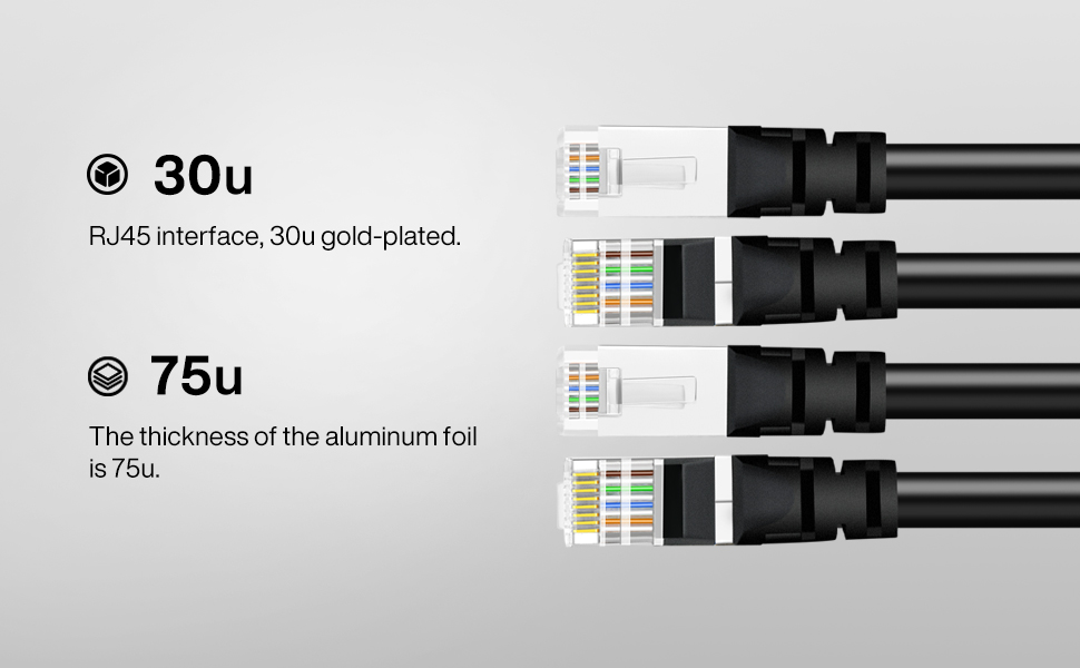 RJ45 interface, 30u gold-plated.