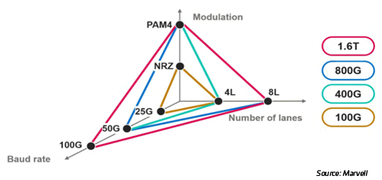 While OSFP1600 supports future switch chips with 200 Gb/s electrical lanes, there is strong market interest in 1.6 Tb/s optical modules based on the existing 100 Gb/s electrical lane ecosystem.