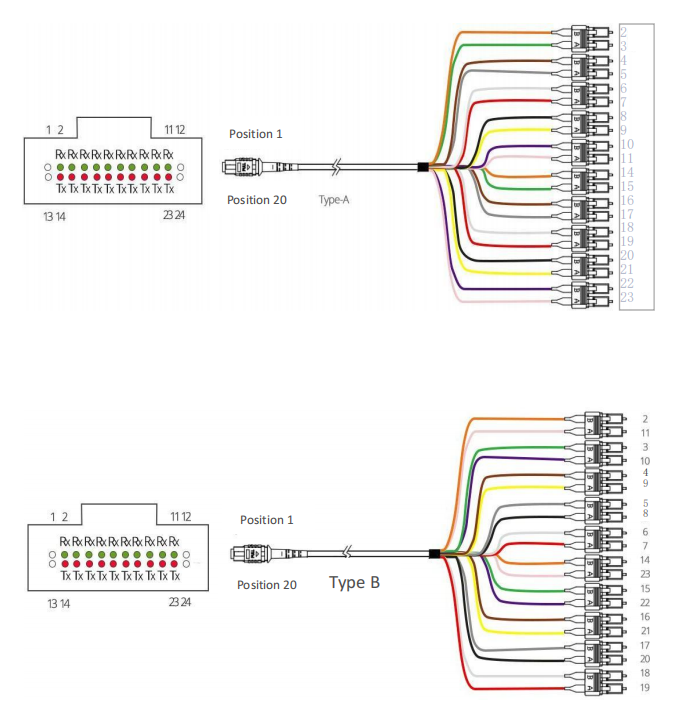There are two different 8-fiber MPO/MTP branch cables: Type A and Type B.