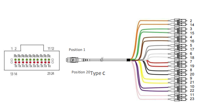 There are three different 20-fiber MTP/MPO breakout cables: Type A, Type B, and Type C.