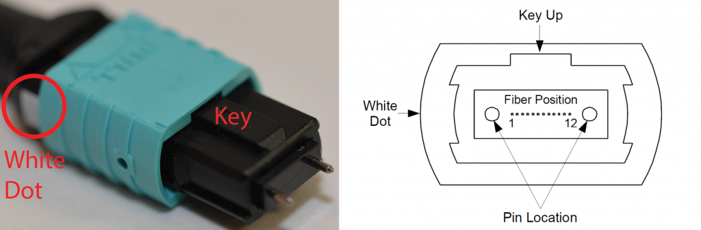 The MTP®/MPO connector represents a major advancement in multi-fiber optic connectivity, delivering superior optical and mechanical performance. Its precision-engineered design (see figure below) guarantees reliable fiber polarity management across MTP®/MPO network systems.