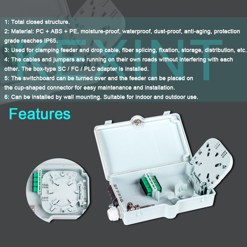 I-Kxt-A-8A Fiber Access Reaccicination Box iyakwazi ukubamba ababhalisile abangafika kwabayi-8. Kusetshenziswa njengendawo yokuqedwa kwekhebula le-feeder ukuxhuma ngentambo yehla ku-FTTX Network System. Ihlanganisa ukuhlukaniswa kwe-fiber, ukuhlukanisa, ukusatshalaliswa, ukugcinwa nokuxhumeka kwekhebula ebhokisini elilodwa lokuvikela eliqinile.
